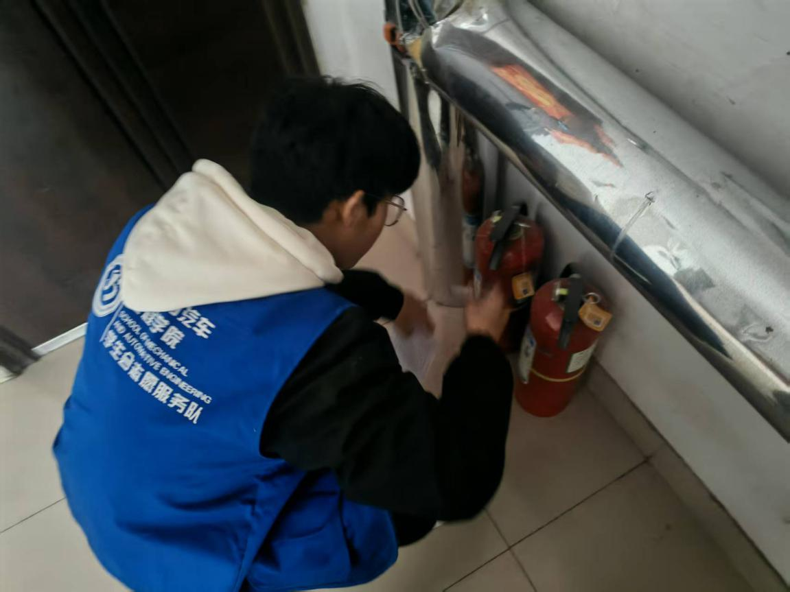 活动现场,志愿者们精神饱满,在接受了社区与消防人员的系统培训后,迅速分组投入工作。他们手持检查清单,对社区内的消火栓、灭火器、消防报警按钮、应急照明及疏散通道等关键设施展开细致排查。机械学子充分发挥专业素养,严谨核查灭火器有效期,排查消防栓接口锈蚀情况,检验消防门闭合状态,确保每一处设施完好可靠。同时,志愿者们还主动向居民发放自制消防宣传单,讲解家庭防火与火场逃生知识,切实增强居民的安全防范意识。